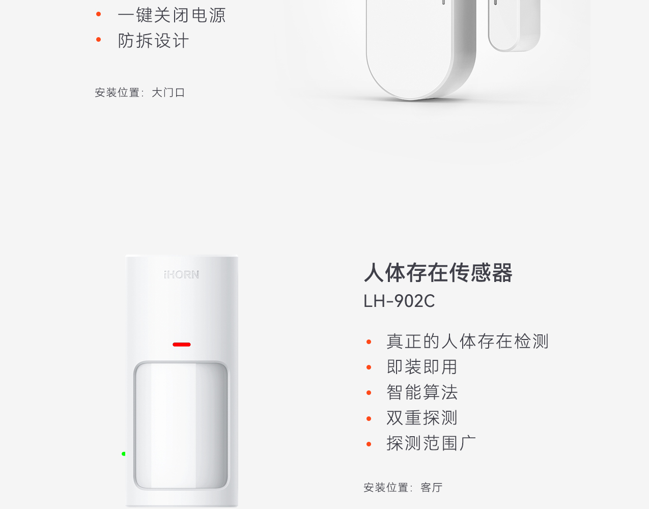 客廳作為老人經(jīng)常活動(dòng)的區(qū)域,存在諸多安全隱患,如煙頭亂丟、電器雜亂放置,同時(shí),老人行動(dòng)不便,易生病、跌倒,在客廳安裝煙霧報(bào)警器、門窗傳感器、人體存在傳感器、拉繩緊急按鈕等,可及時(shí)發(fā)現(xiàn)火災(zāi)等突發(fā)情況,第一時(shí)間處理警情。